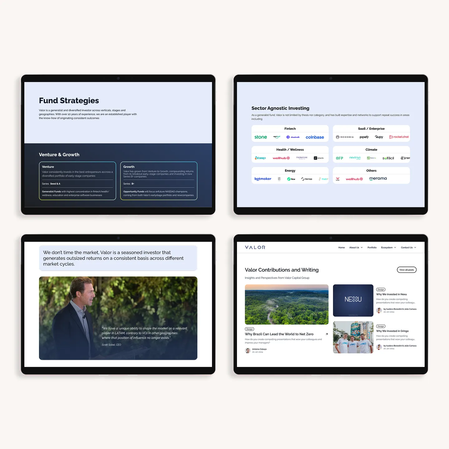 O Valor Capital Group é um fundo de venture capital e private equity focado em investimentos early-stage e de crescimento, com forte atuação no Brasil e em outros países da América Latina. Ele se destaca por sua estratégia cross-border, conectando empresas e mercados do Brasil e dos Estados Unidos, com escritórios em São Paulo, Rio de Janeiro, Nova York e Vale do Silício.